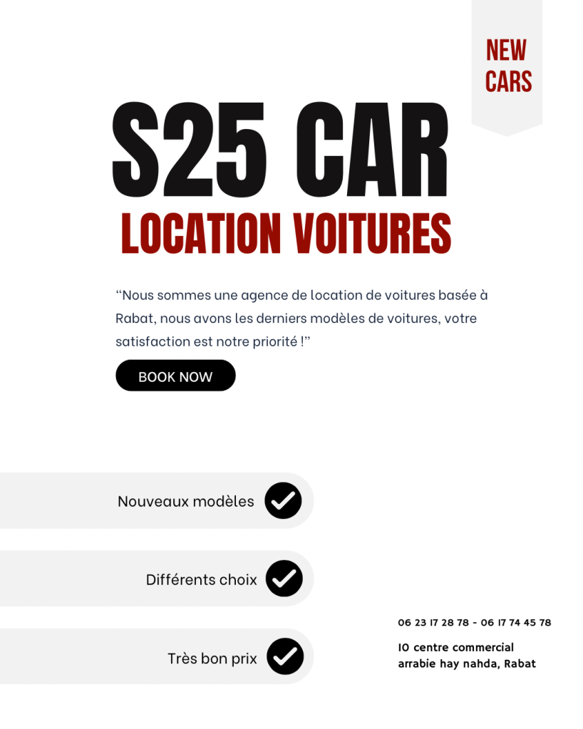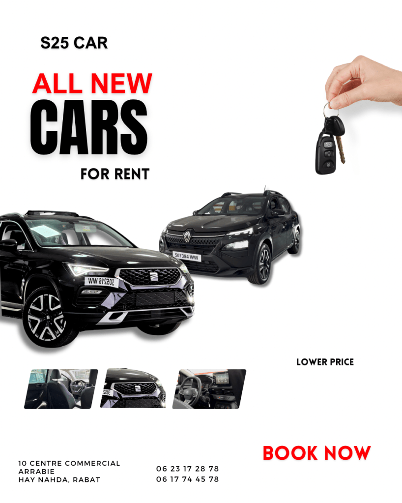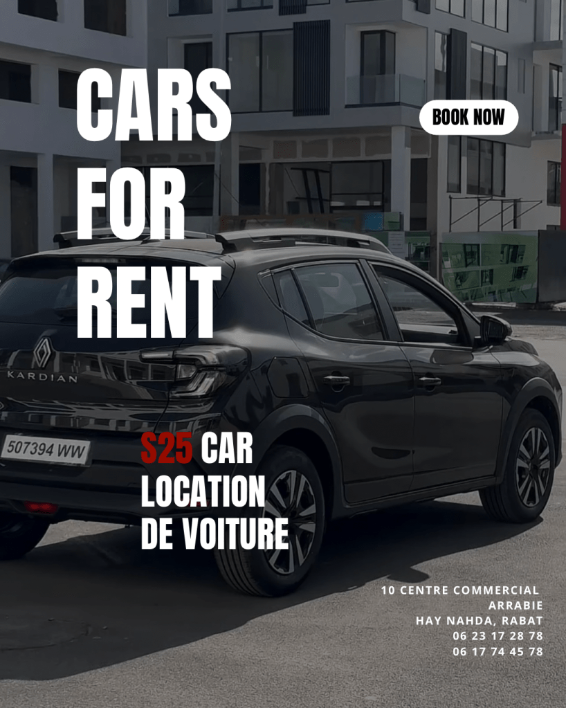 Looking for reliable car rental in Agadir? At soulaimanis25car, we offer a wide range of well-maintained vehicles at affordable prices, perfect for exploring the city, beaches, and beyond. With easy online booking, 24/7 customer support, and no hidden fees, we ensure a seamless experience. Choose from compact cars, SUVs, and more for your next adventure.